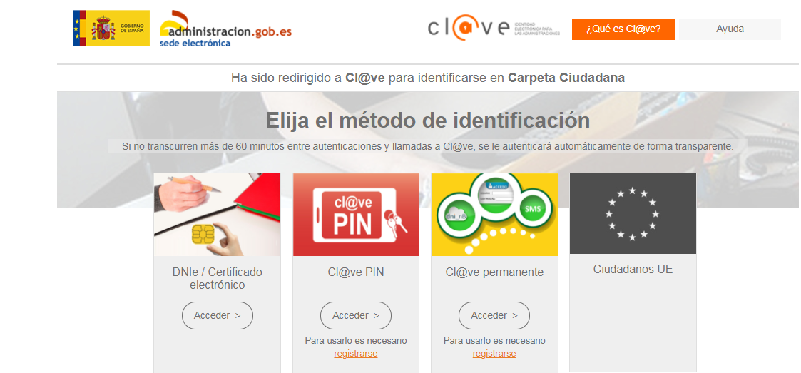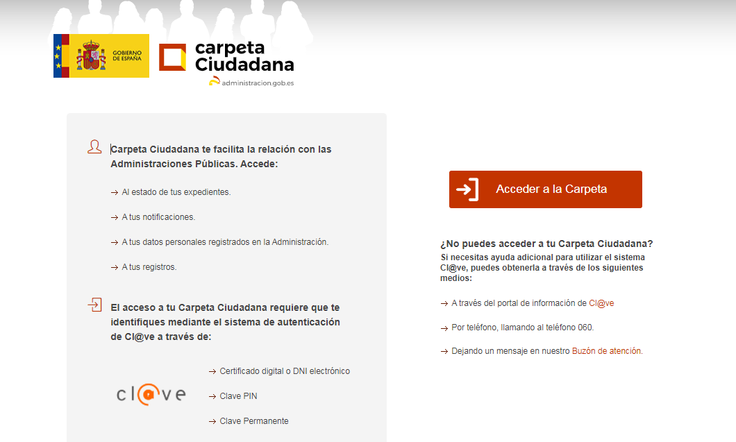 El acceso a tu Carpeta Ciudadana requiere que te identifiques mediante el sistema de