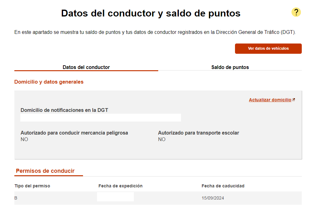 La Carpeta Ciudadana nos permitirá también conocer el domicilio que está registrado en la DGT (recuerda que la DGT te obliga a que tengas ese dato siempre actualizado de cara a posibles notificaciones), así como nuestro saldo de puntos actual junto con los últimos movimientos llevados a cabo.